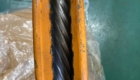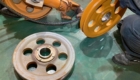 当社では、定期点検の際にクレーンのロードブロックシーブに「条痕(ワイヤーロープによる摩耗痕)」を確認しました。そのため、安全性を確保するためにシーブを新品に交換いたしました。クレーンのシーブ(滑車)は、常にワイヤーロープとの摩擦が発生するため、長期間の使用で摩耗や条痕が進行します。摩耗したまま使用を続けると、ワイヤーロープが傷みやすくなり、切断や寿命の短縮につながる恐れがあります。シーブやワイヤーロープの摩耗は、クレーンの安全稼働に直結する重要な点検項目です。定期的な点検と部品交換を行うことで、故障や事故を未然に防ぐことができます。