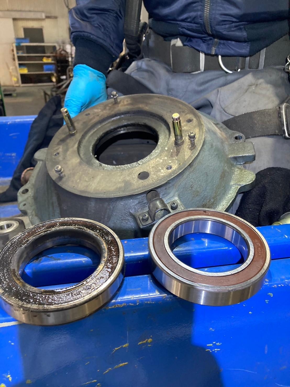 クレーン巻上げブレーキ部のベアリング交換について