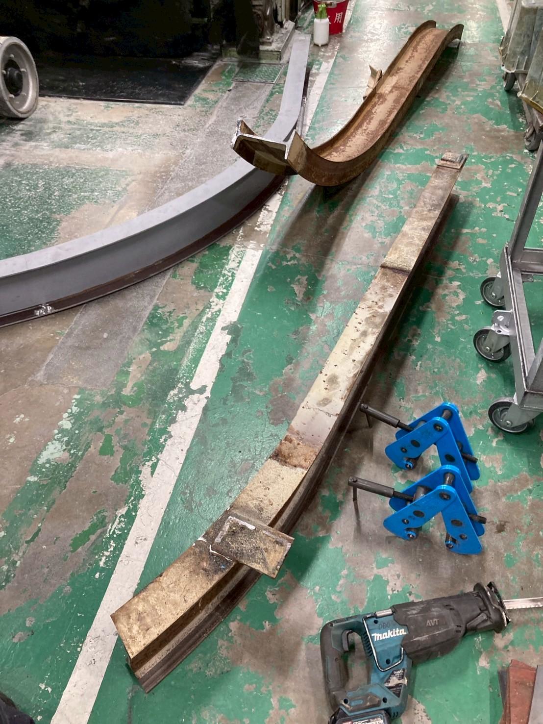 テルハクレーンのレールは、長期間使用するとどうしても摩耗していきます。