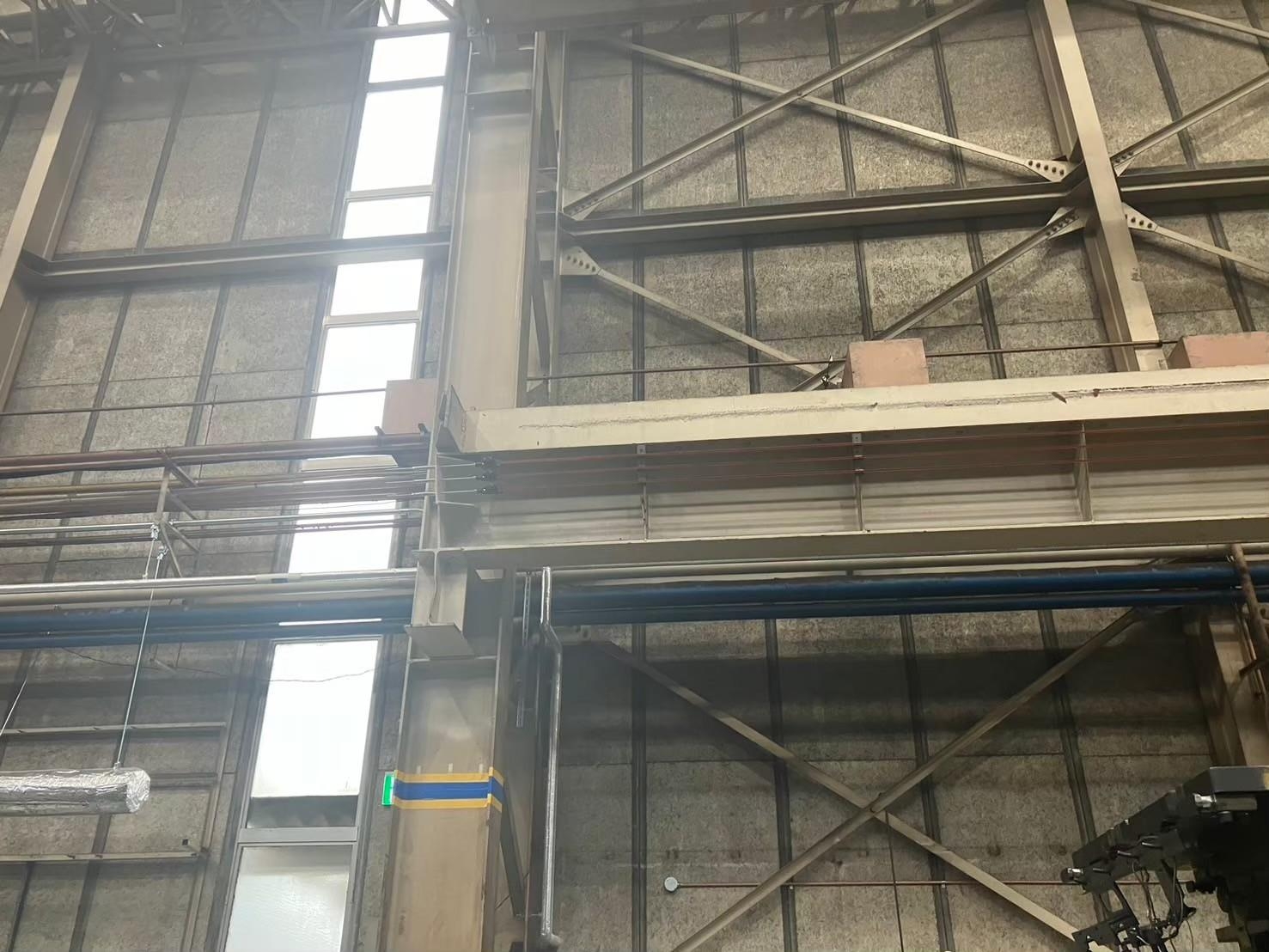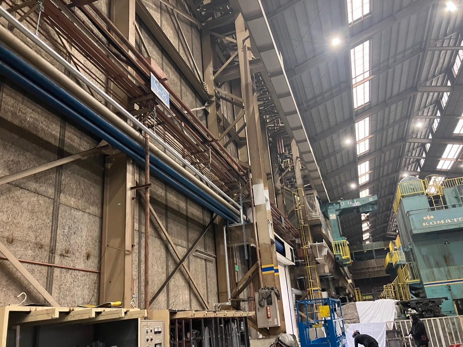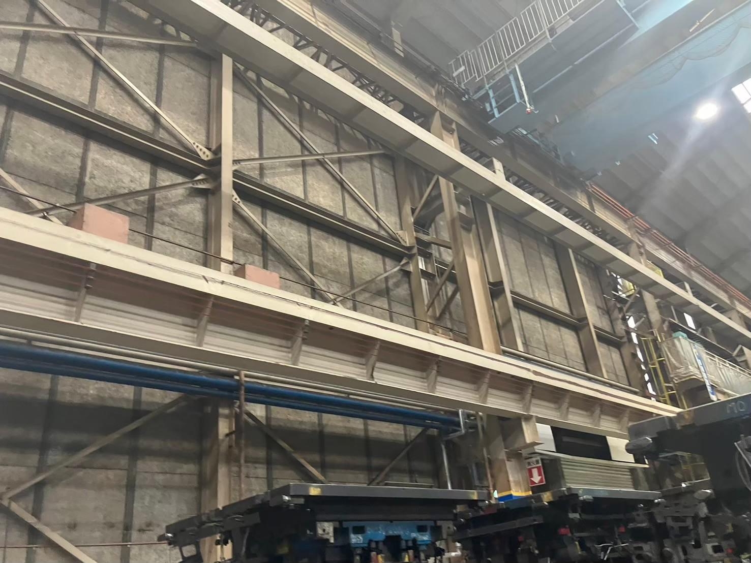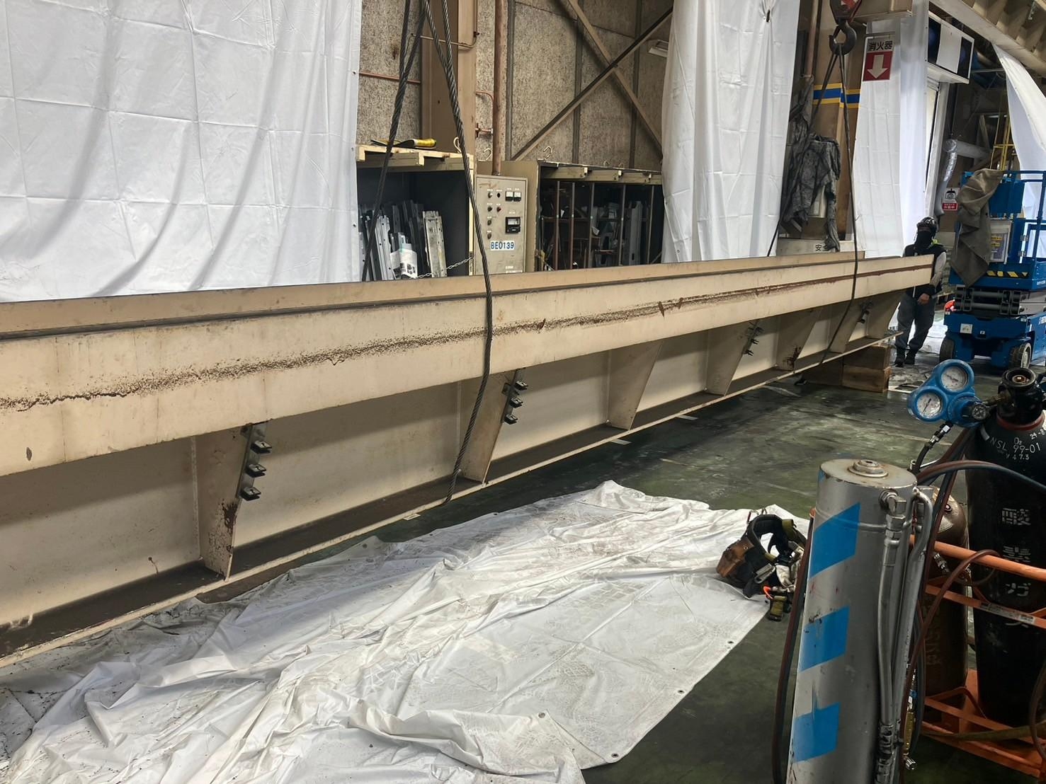 長年使用されていた天井クレーンですが、役目を終えた後も走行レールが残ったままでした。
