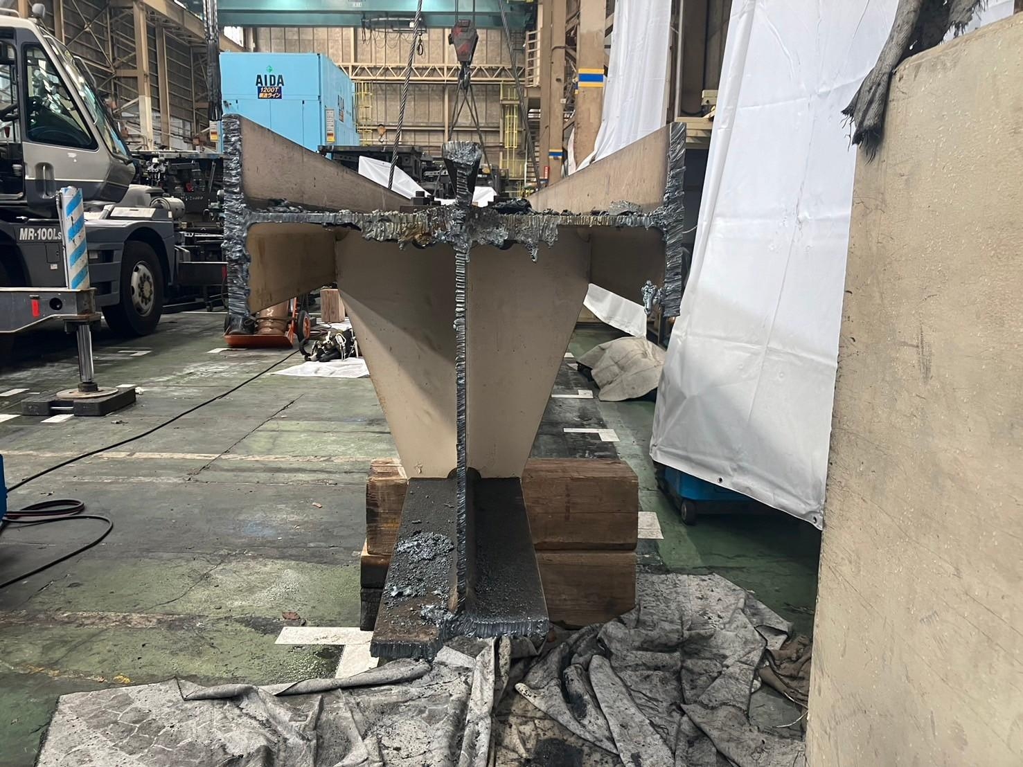 頑丈に取り付けられていたレールを効率よく切断するために、溶断作業を採用しました。