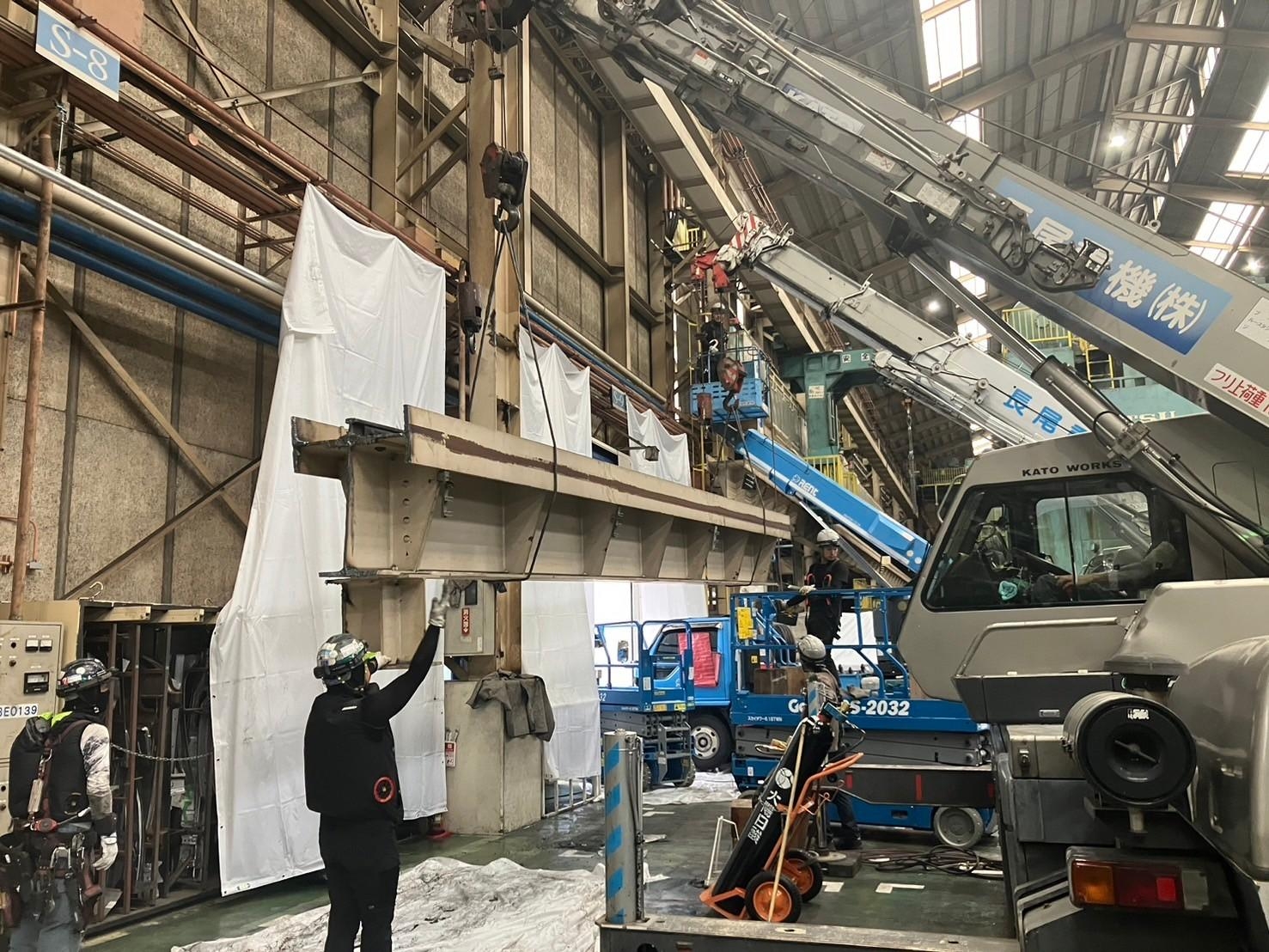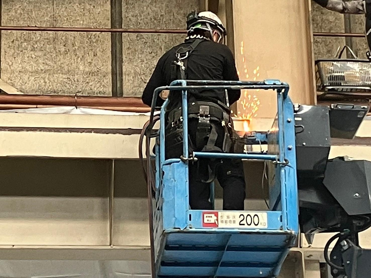 火花が飛び散る作業のため、火災防止対策を万全に行いながら慎重に進めました。