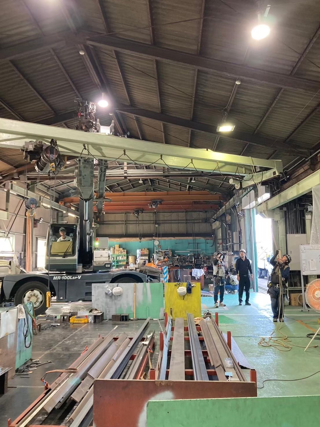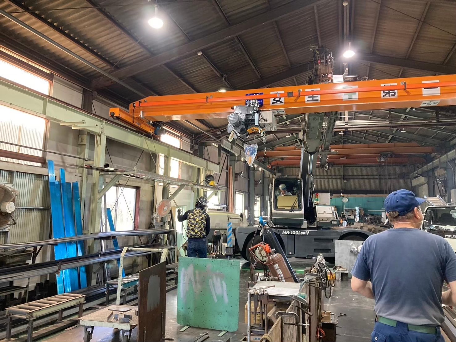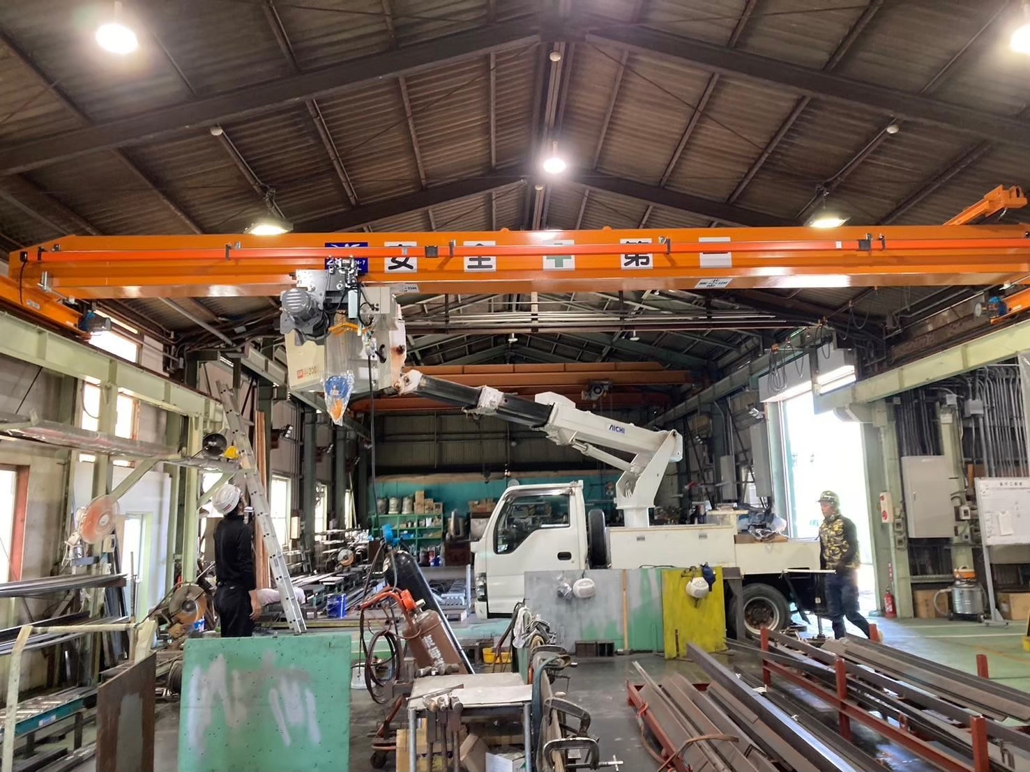 長年の稼働によって老朽化が進んでいた天井クレーンを、このたび新しい機種へと入れ替える工事を行いました。