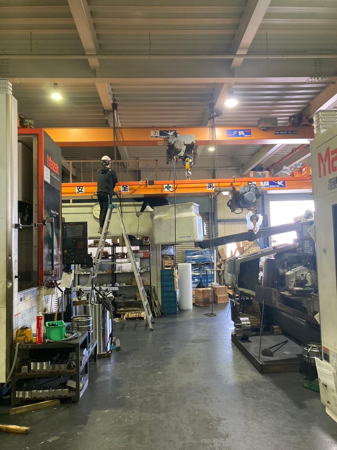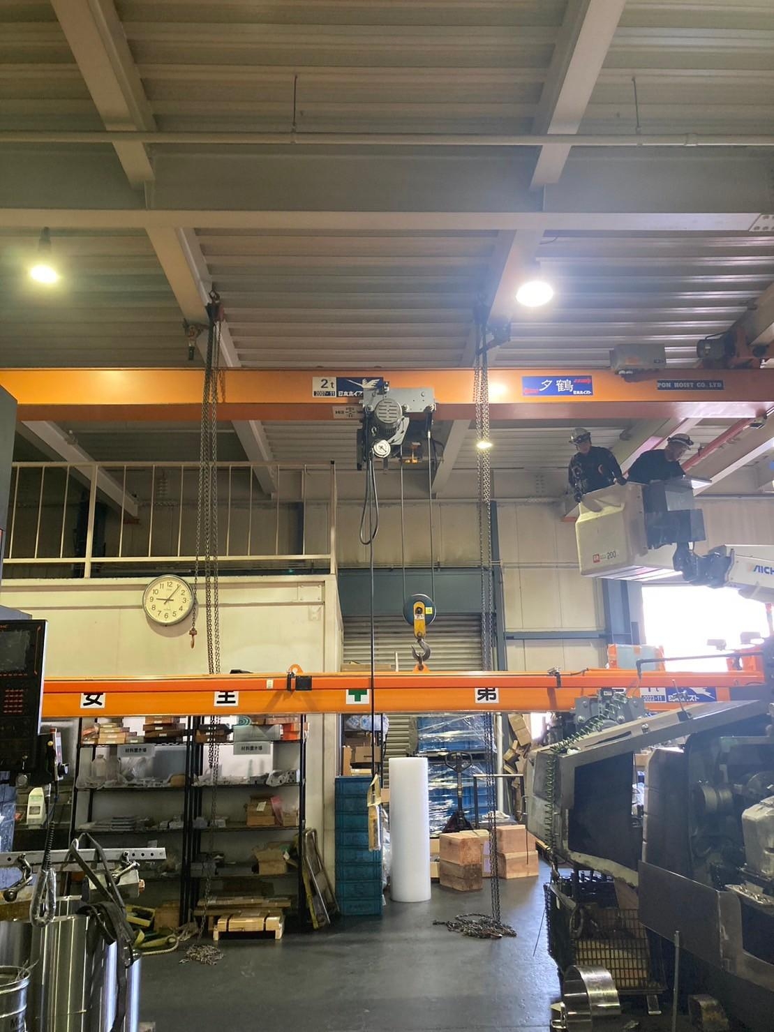 今回は、新しい天井クレーンを増設させていただきました。作業時間の短縮、作業負荷の軽減を図り、コスト削減・多能工化に繋げていきます。天井クレーンにはいくつかの種類がありますので、必要性に応じたクレーンをご提案させていただきます。