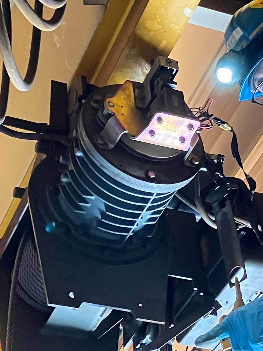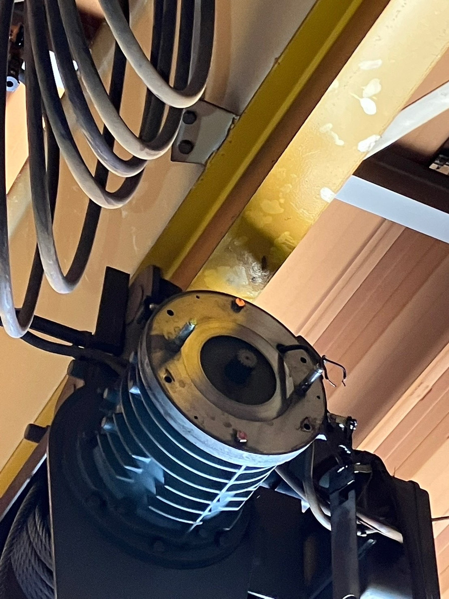 巻上ブレーキが効かないと、吊荷は落下し重大な事故に繋がります。 ギアの摩耗やライニングをチェックし、ギャップの調整をします。