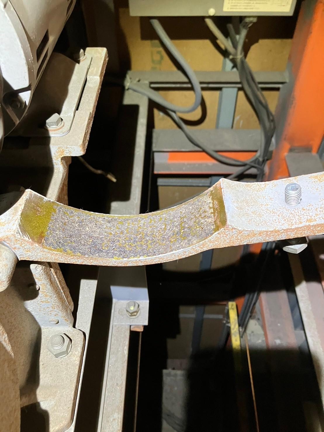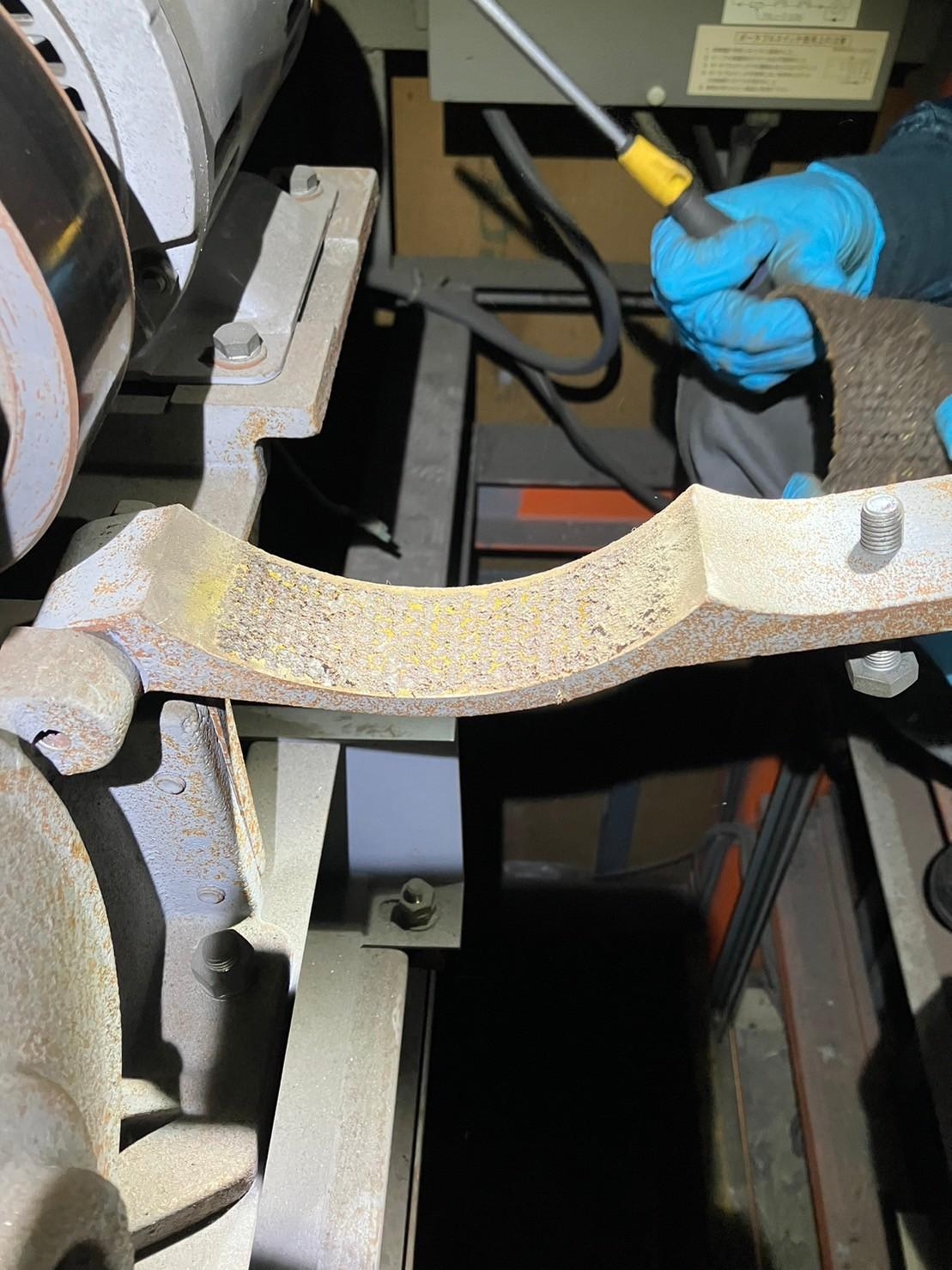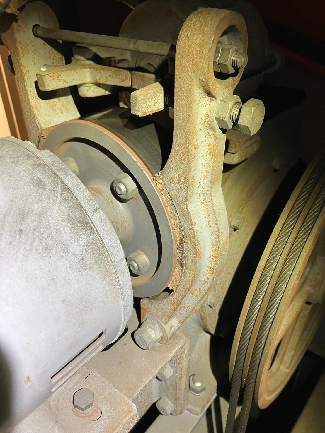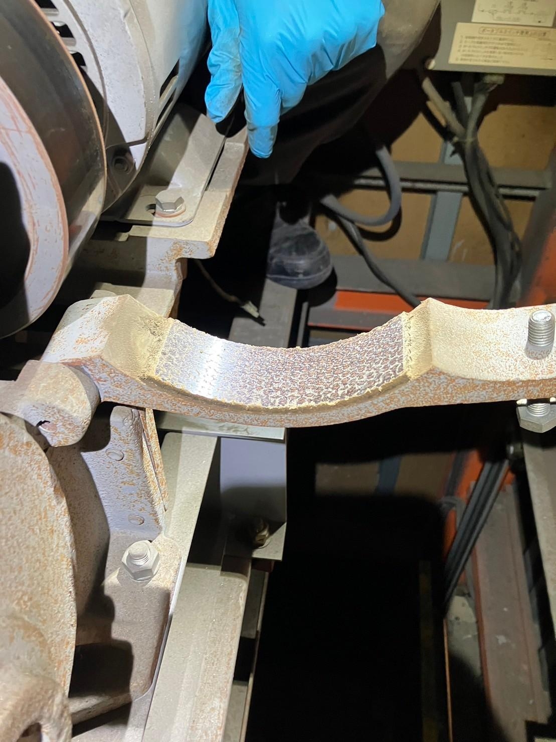 巻上機のブレーキライニングが摩擦が起こってきていた為、交換作業を行いました。