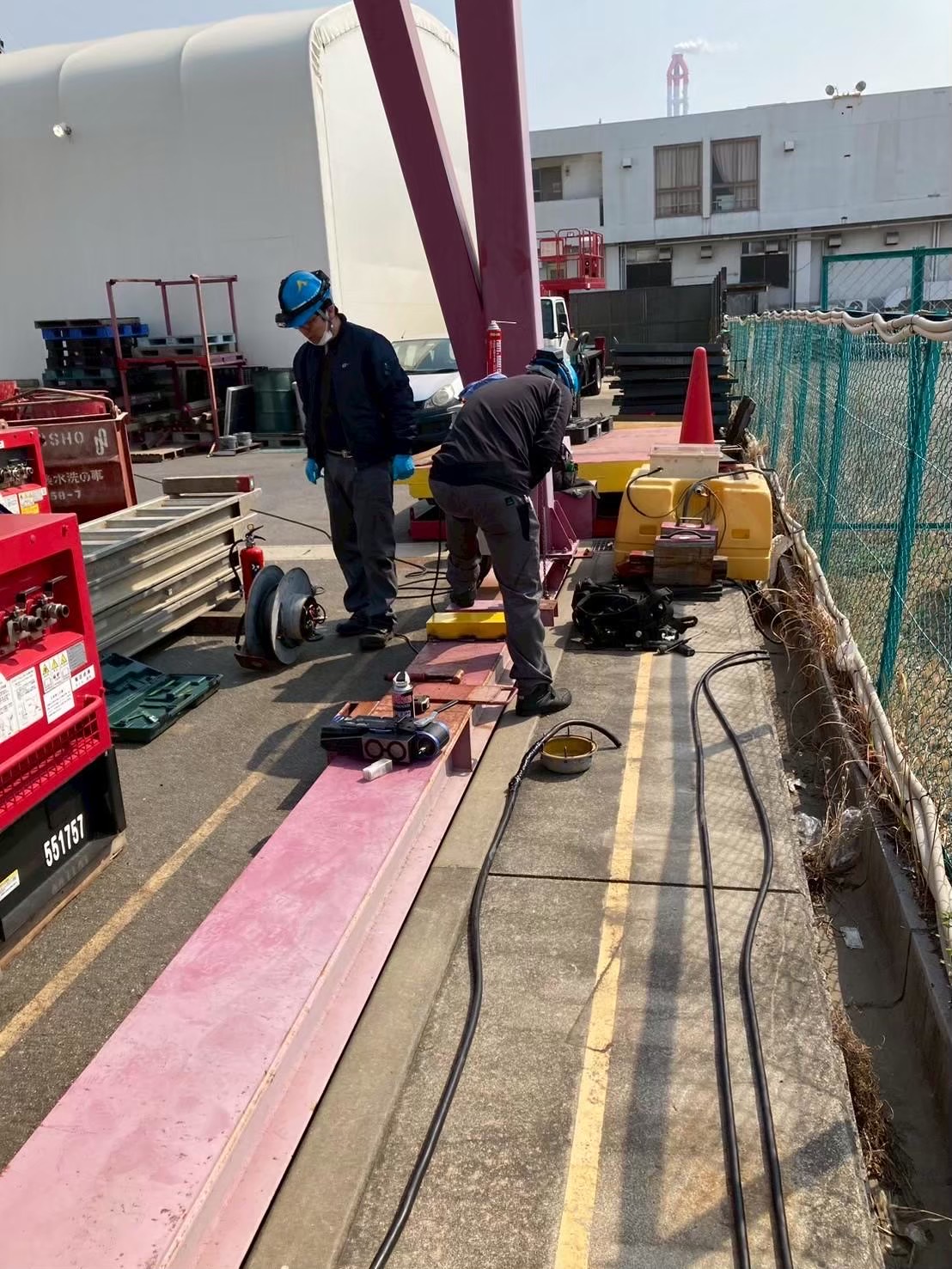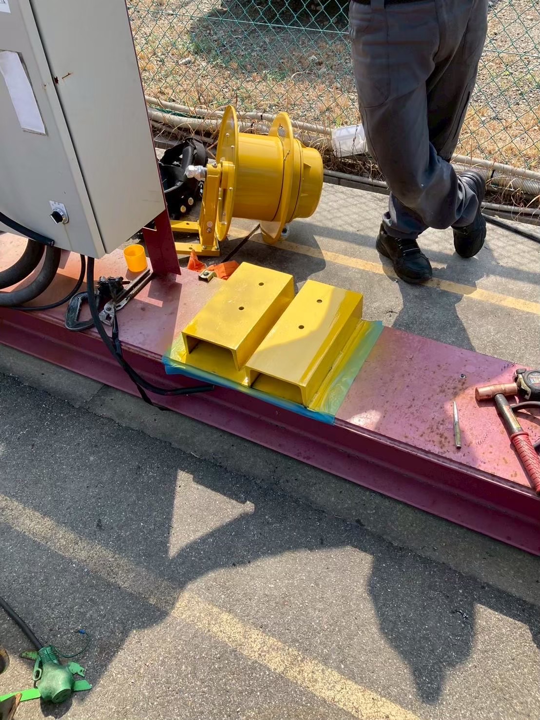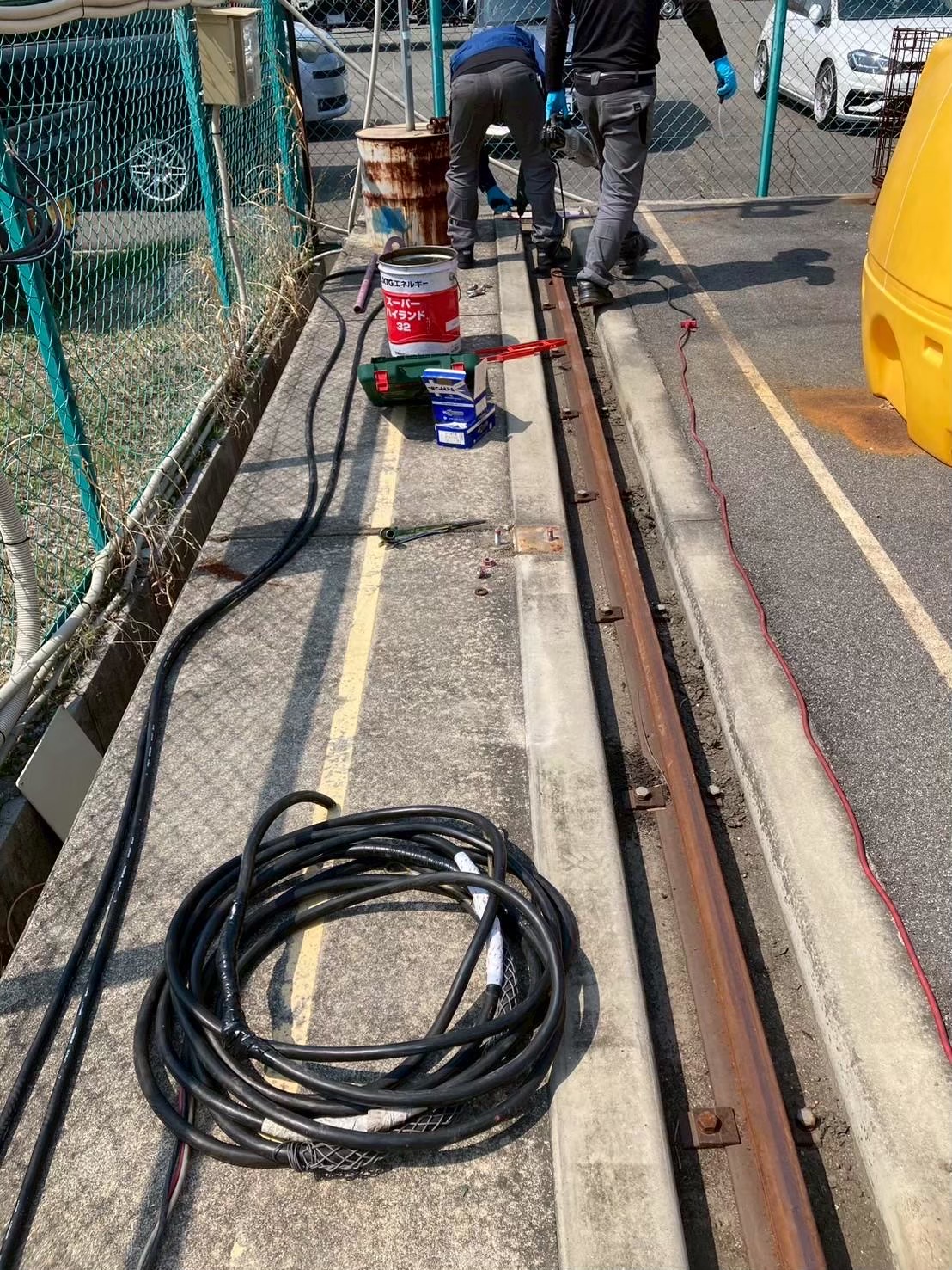 今回は、長年稼働してきた橋形クレーンの走行ケーブル(電源ケーブル)が経年劣化していたため、新品ケーブルへの交換工事を行いました。 安全対策を徹底しながら、古いケーブルを丁寧に撤去し、耐久性・柔軟性に優れた新規走行ケーブルへと交換を実施。
