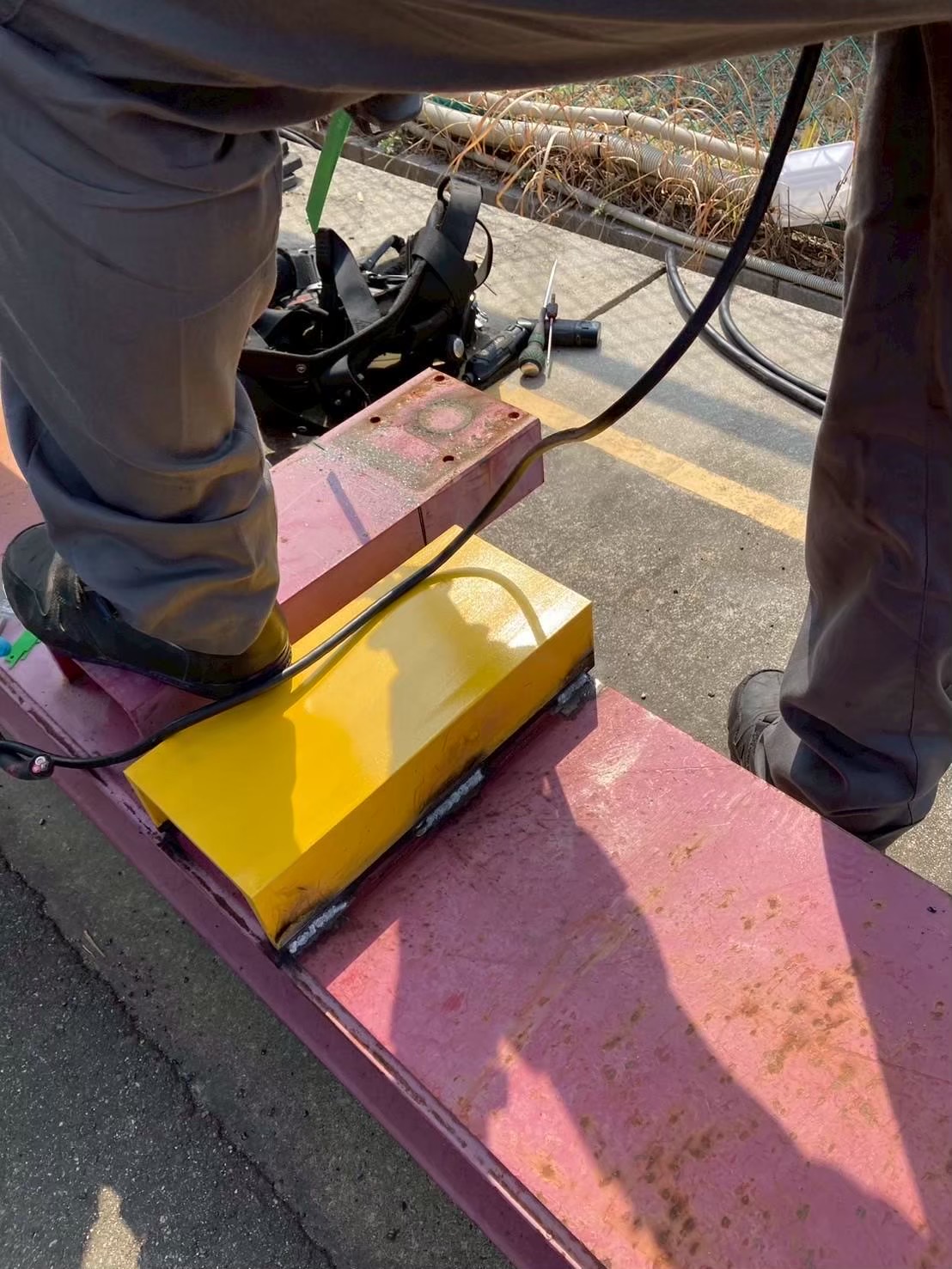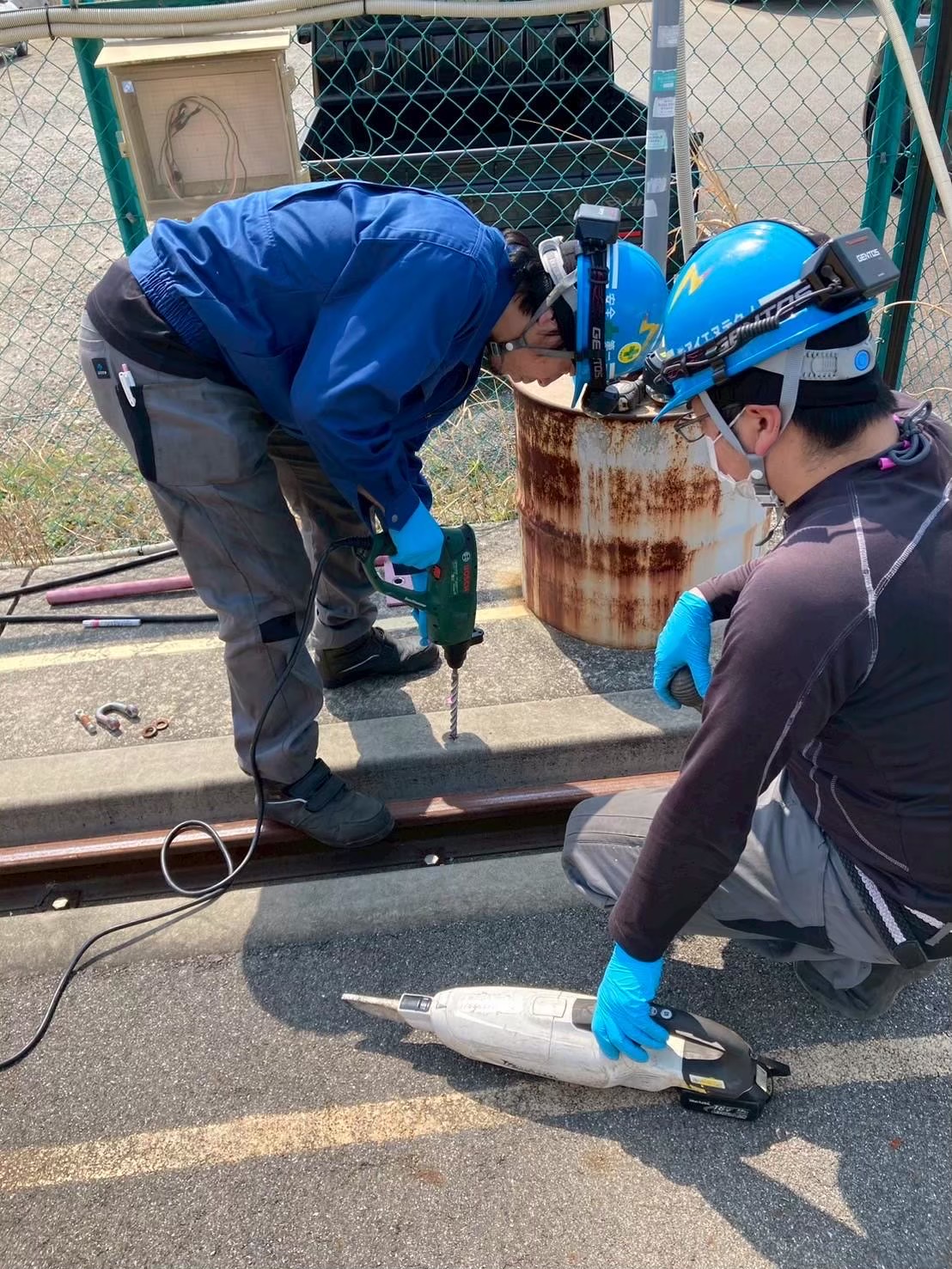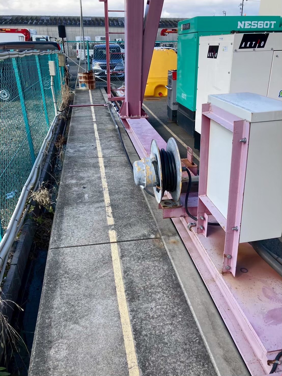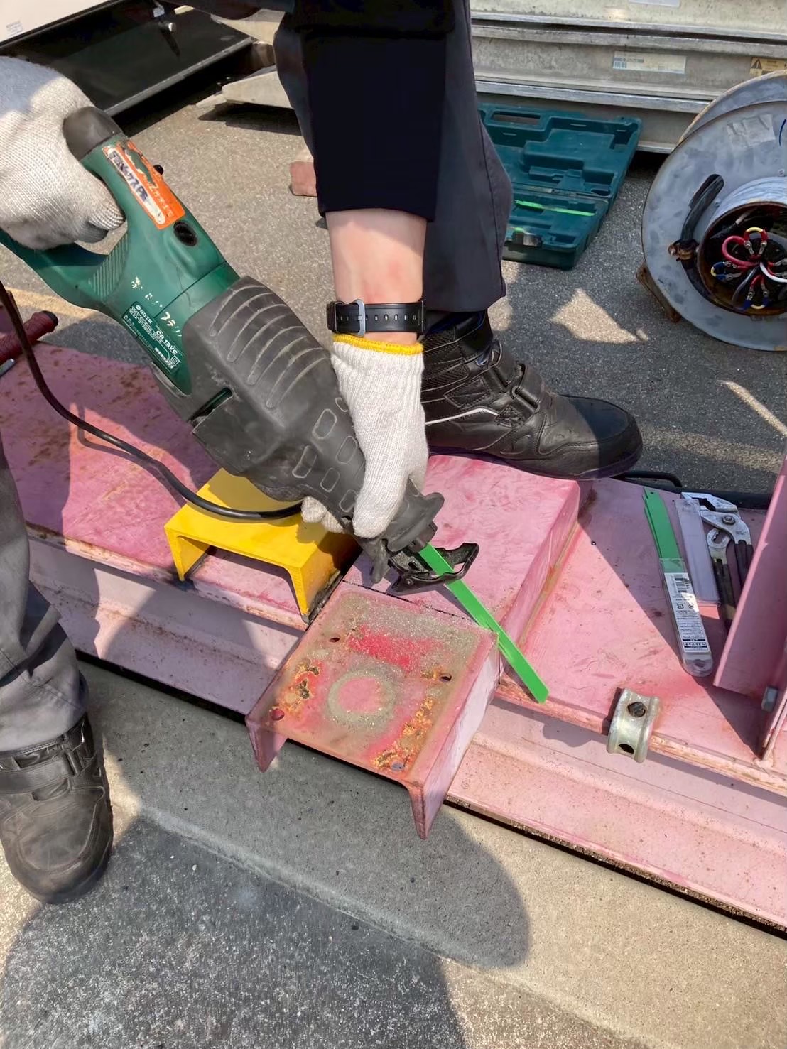 今回は、長年稼働してきた橋形クレーンの走行ケーブル(電源ケーブル)が経年劣化していたため、新品ケーブルへの交換工事を行いました。 安全対策を徹底しながら、古いケーブルを丁寧に撤去し、耐久性・柔軟性に優れた新規走行ケーブルへと交換を実施。